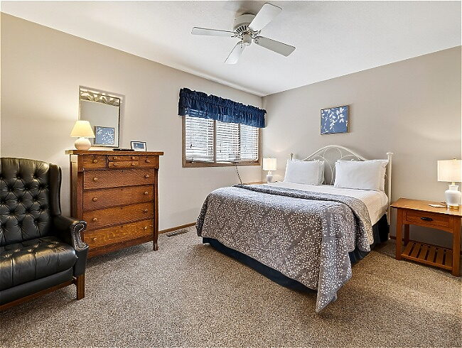 - Queen with private bath – Upstairs