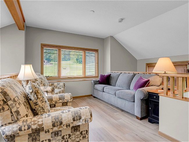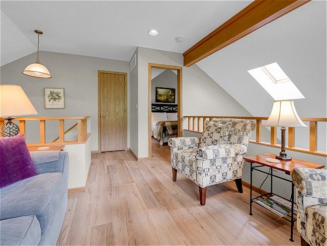 The Valleywood Golf Villas offer the ideal combination of unique townhouse design and a prime golf-oriented location. Surrounded by the challenging 15th, 16th and 17th holes of the famed Eagle Ridge North Golf Course, these one- and two-bedroom Villas are also adjacent to the Eagle Ridge’s extensive hiking trail system. All other resort amenities are easily accessible from this central location. In addition to its unsurpassed golf orientation, this spectacular area overlooks a beautiful oak and walnut forest, the pond which protects the sixteenth green, and the scenic stream which winds through the 15th and 16th fairways. The Golf Villas are creatively designed and positioned to maximize both privacy and the stunning golf views. Each Valleywood Golf Villa includes a wood-burning fireplace, vaulted ceilings with skylights, a fully equipped kitchen, ample living and dining areas, loft area, laundry area and spacious wood deck.