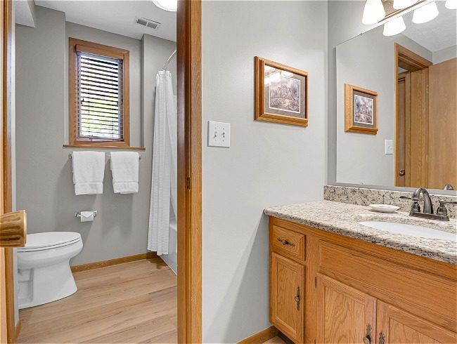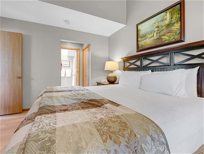 - King bed with private bath – Upstairs