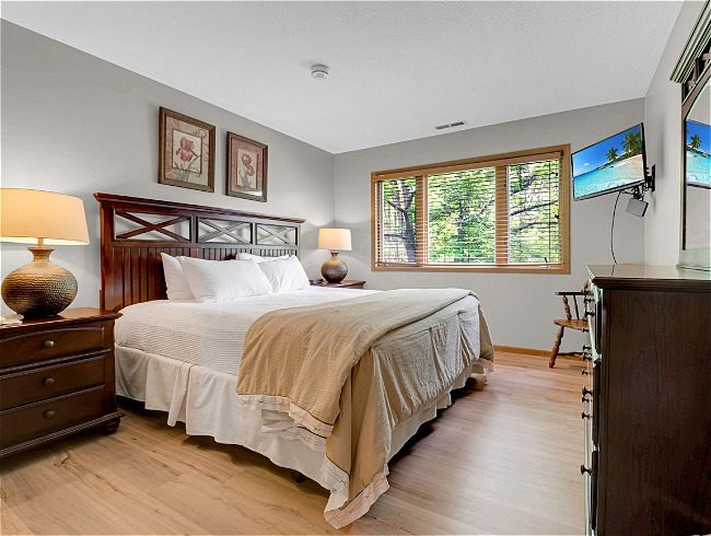 - King bed with semi-private bath – Downstairs