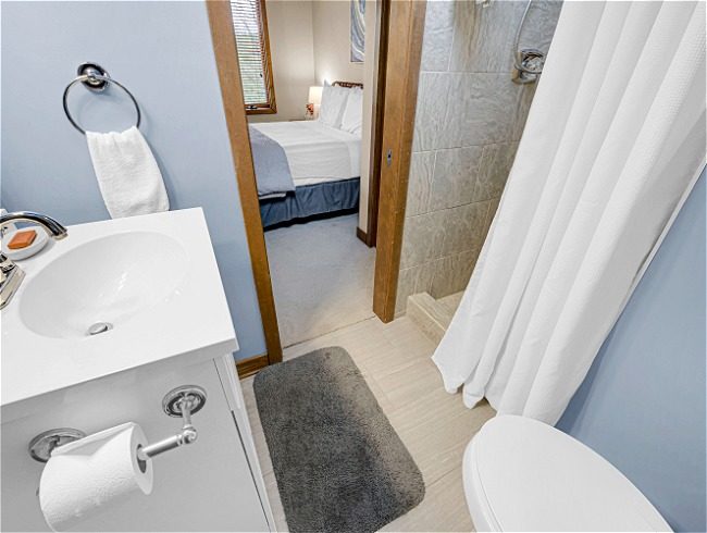 - Queen bed with shared bath – lower level
